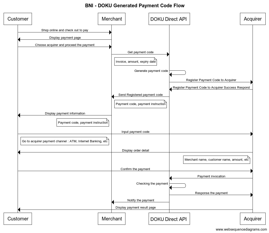 DOKU Generated Payment Code (DGPC): The payment code is generated by DOKU. Suitable for e-commerce business model.