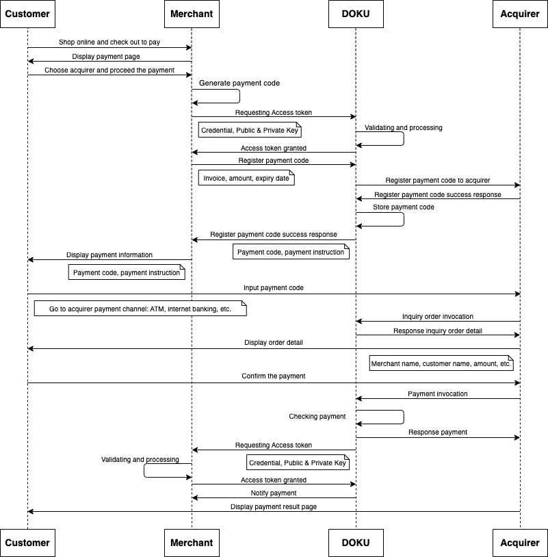 <figure><img src="https://3092822868-files.gitbook.io/~/files/v0/b/gitbook-x-prod.appspot.com/o/spaces%2FqCxtvLoJNNxvp4U7kLHd%2Fuploads%2FeXO0AEG1ZyAQXNXb7fky%2Fimage%20(4).png?alt=media&#x26;token=e6accf02-d7e1-4fc3-ad24-3e95d82ee828" alt=""><figcaption><p>DOKU Generate Payment Code</p></figcaption></figure>